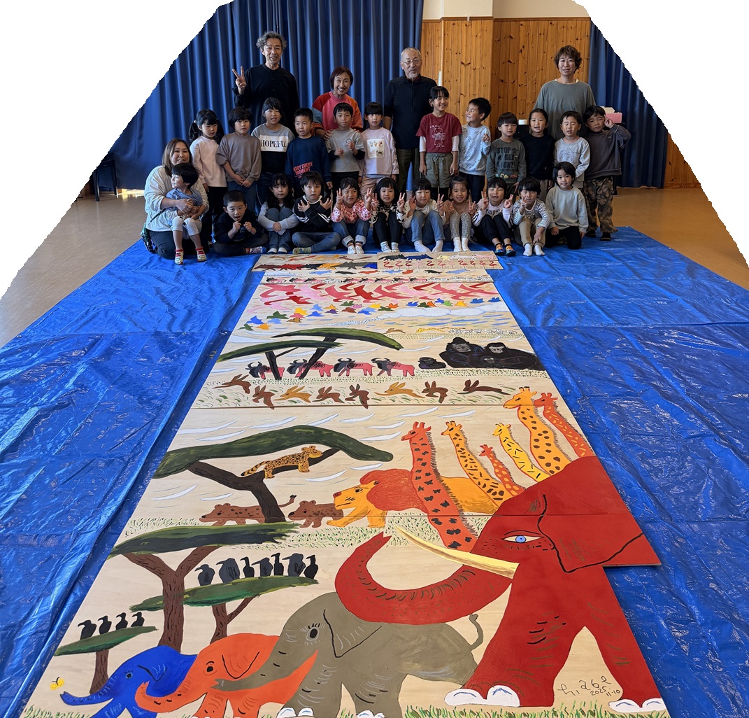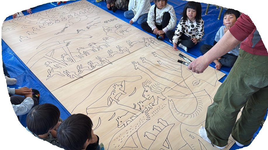 ひきえ子ども園15周年記念 『あべ弘士さんと壁画を作ろう』